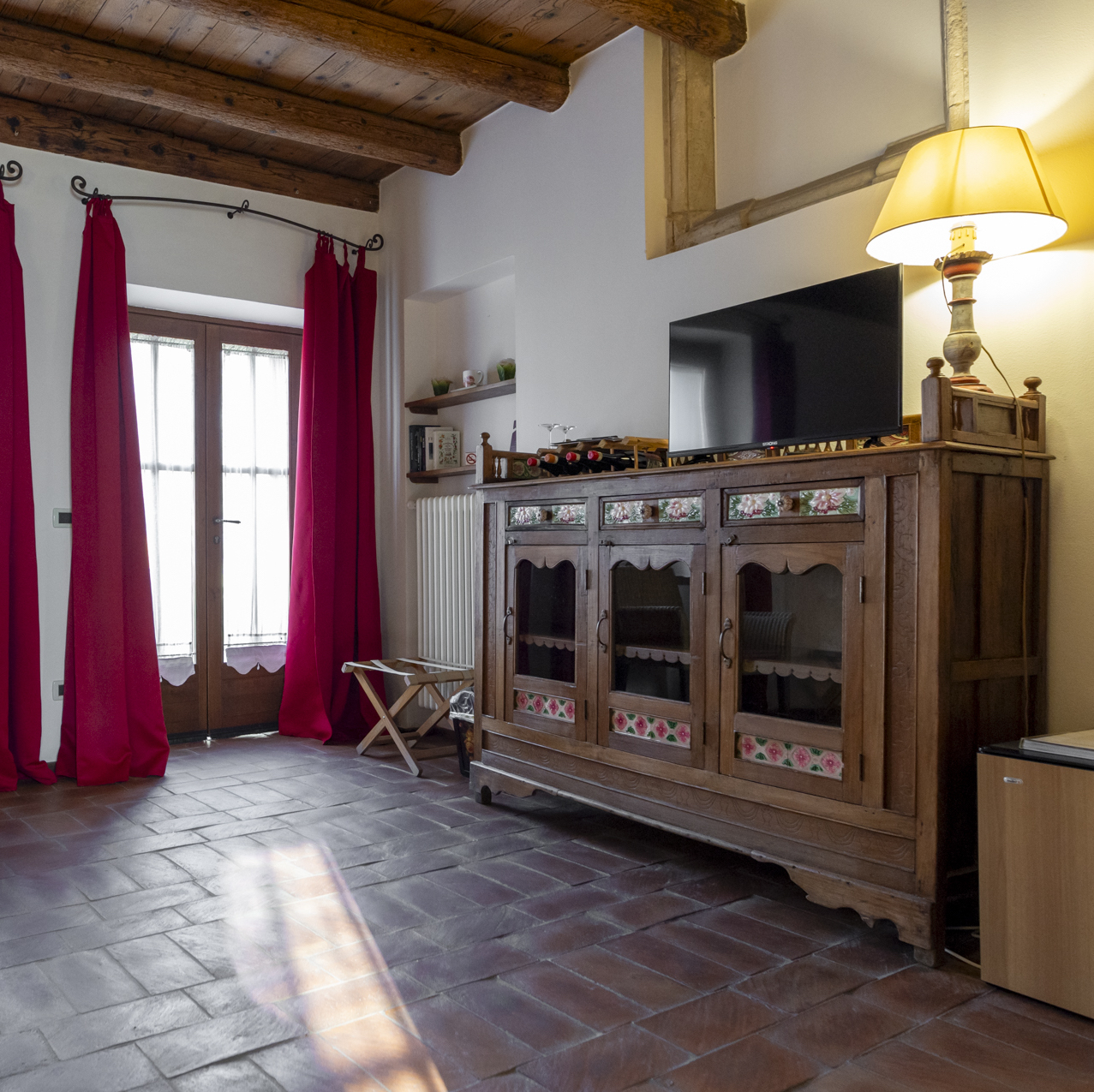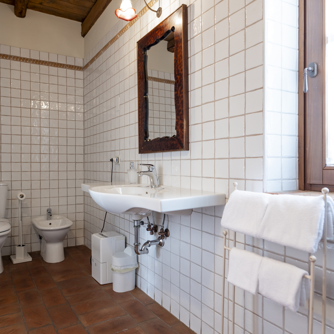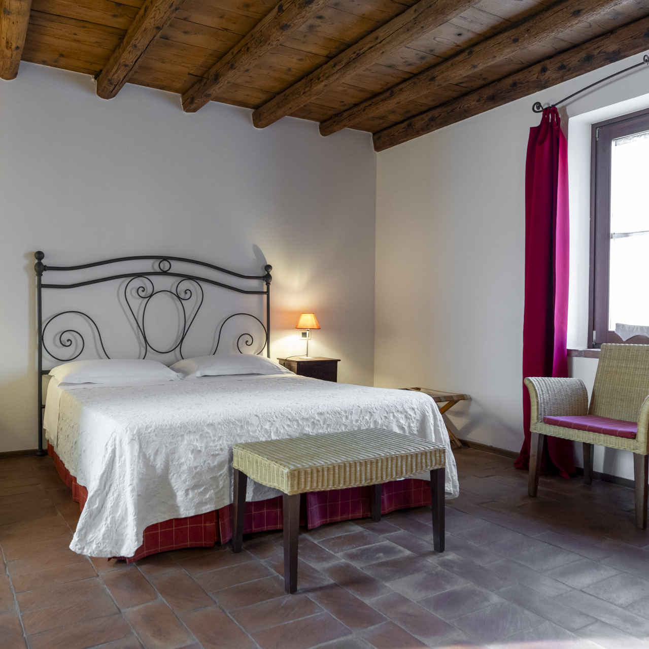 Camera Standard matrimoniale a piano terra con letto matrimoniale (letti gemelli) a tema floreale e vista sugli olivi della corte. L’ampio bagno con doccia e asciugacapelli. Vino, calici e cavatappi, aria condizionata, mini frigo, bollitore. La prima colazione è compresa.